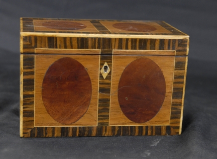 Gorgeous English Regency style tea caddy with intricate inlay work