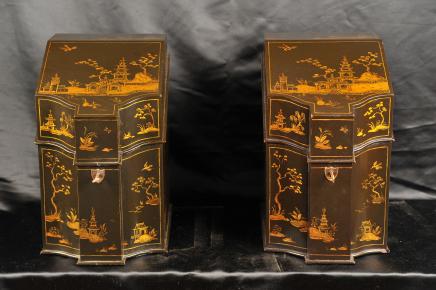 – Gorgeous pair Chinese black laquer jewellery boxes