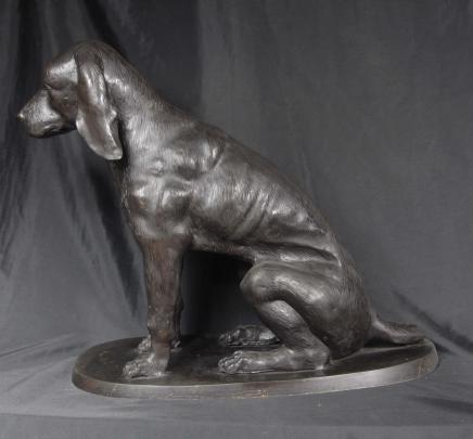You are viewing and absolutely lovely English bronze sculpture of a labrador retriever dog. The dog is almost lifesize and is depicted sitting attentively and patiently as labradors are reknowned for.