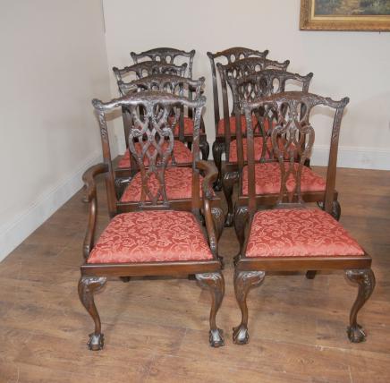 8 Chippendale Mahagoni Esszimmerstühle Lions Head