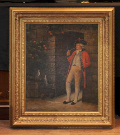 – Gorgeous 18th century style oil painting of a red coated gent smoking a pipe