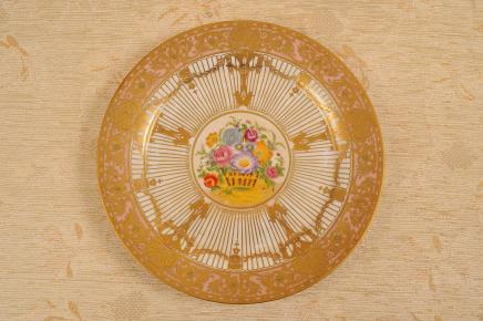 The main colour theme is of course that tone of gold made famous by the Limoges factory. Around the edges are also incredibly detailed gold leaf painted designs and lattice work – again the level of crafting to these is mindblowing.