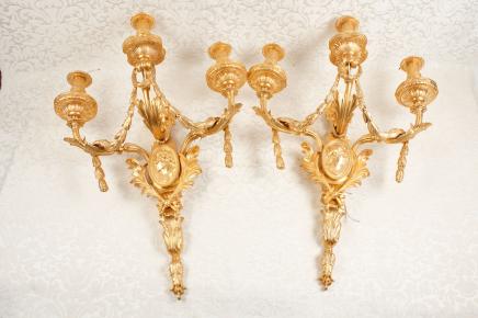 – Stunning pair of French Regency style ormolu sconces