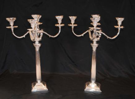 – Stunning pair of Regency style silver plate candelabras
