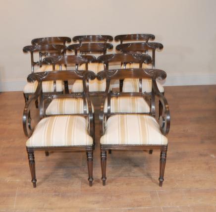 Du siehst einen wunderschönen Satz von 10 bar Wilhelm IV. zurück Esszimmerstühle Hand aus feinstem Mahagoni gefertigt. Das Set besteht aus 2 Sesseln und 8 Stühle und würde für eine nicht von dieser Welt Ess-Set zu machen. Die Stühle sind solide und robust und sehr angenehm zu sitzen auf den gepolsterten Sitzen. Es gibt keine Wobbelungen der Gelenke.