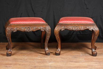 – Atemberaubende Paar handgeschnitzte Chippendale Stil Hocker George III