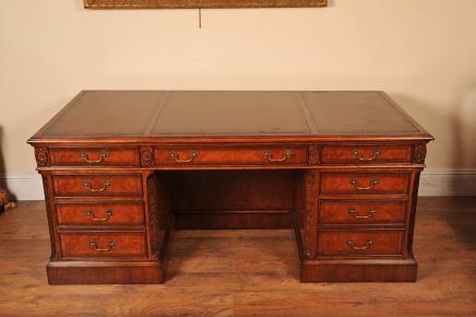 – Stunning walnut Regency style desk with hand carved details