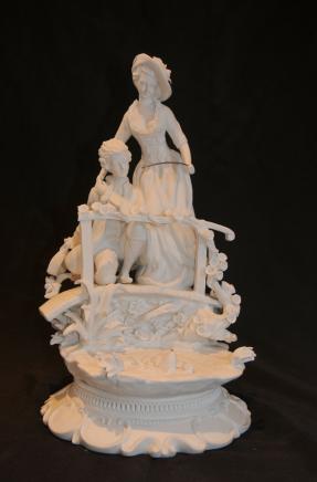 – Stunning French Sevres style bisque porcelain male and female figurine scene