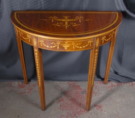 Englisch Sheraton Inlay-Konsole Tabelle Tabellen Demi Lune