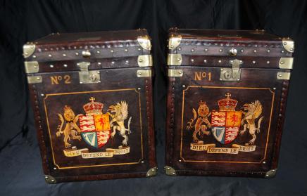 Du siehst eine einzigartige und unkonventionelle Paar Leder Reisen / Gepäck-Boxen, die wir glauben können als flippige Couchtische verwendet werden und sind somit jedes Innenarchitekten Traum!