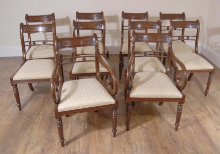 Du siehst einen Satz von zehn handgefertigten englischen Regency Stil Blume Bar Stühle aus Mahagoni, bestehend aus 8 und 2 Stühle ohne Armlehne Carver oder Arme. Dieses Set sind wirklich ein elegantes Stück, und die Ebenen der Verarbeitung und Handwerkskunst sind wirklich hoch und erstaunlich. Wir kauften diese bei einem Händler in York, vor kurzem auf einer Kaufentscheidung Fahrt auf dem Nord während.