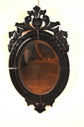 – Cute and funky Italian rococo style glass mirror with Venetian touches – Mirror is offered in great shape, bevelled glass is clear and blemish free – Intricate frame has hand etched designs including rosettes and other designs – Will ship to anywhere in the world