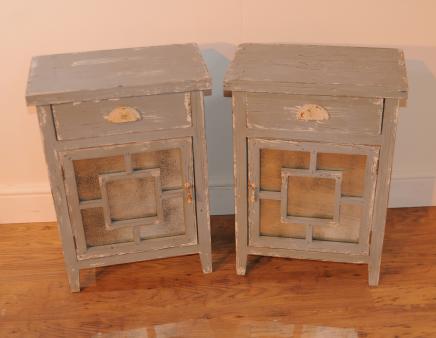 – Stunning pair of mirrored bedside tables with antiqued painted finish