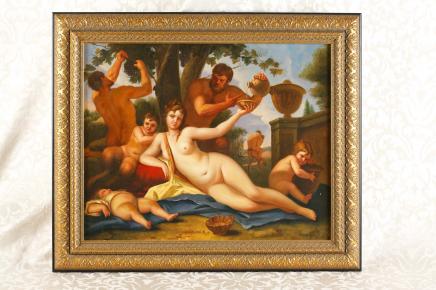 – Hand painted picture depicts a stunning allegorical scene with a female nude flanked by cherubim