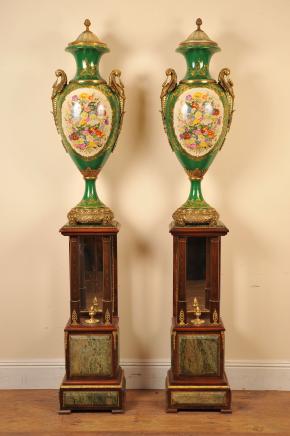 Pair Sevres Porcelain Vases Urns XL