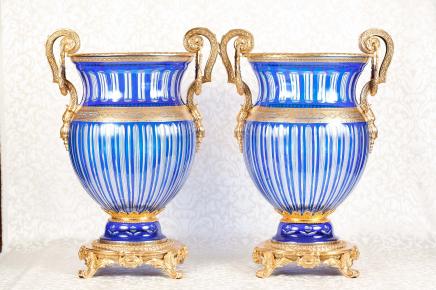 – Absolutely exquisite pair of French Empire style glass urns
